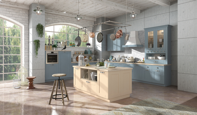В помещения, совмещающие обеденную зону и гостиную, можно внедрить и кухни кантри. При создании данных версий используются натуральные оттенки и текстуры. Для декоративной отделки применяются деревянные решетки, резные узоры, растительные орнаменты.