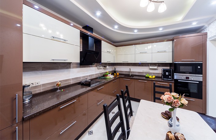 Преимущества дизайна кухни в бело коричневых тонах