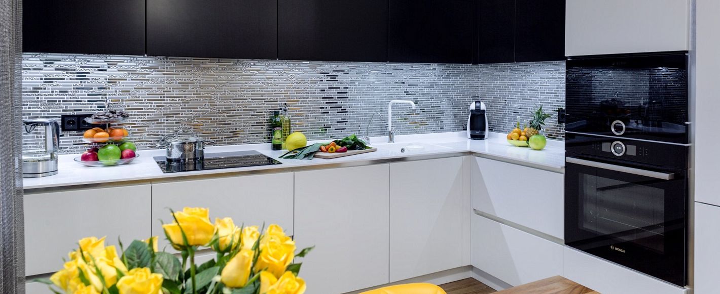 Интерьер черно-белой кухни