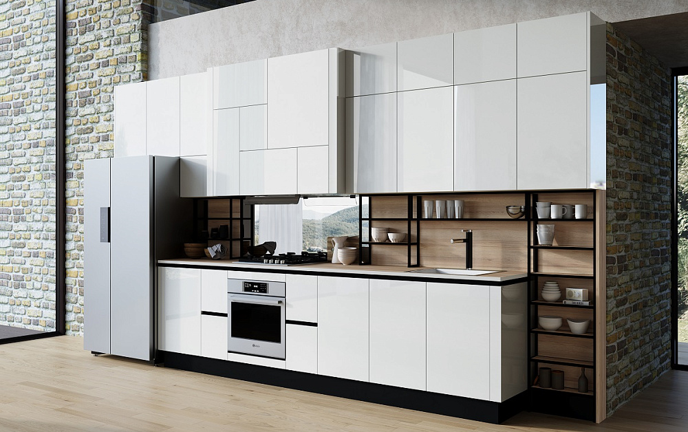 Если стены кухни не позволяют установить стандартный комплект мебели, рекомендуем заказать кухню по индивидуальным размерам. В этом случае дизайн-проект будет реализован с учетом особенностей помещения. Например, ниши будут использованы для установки полок и бытовой техники.