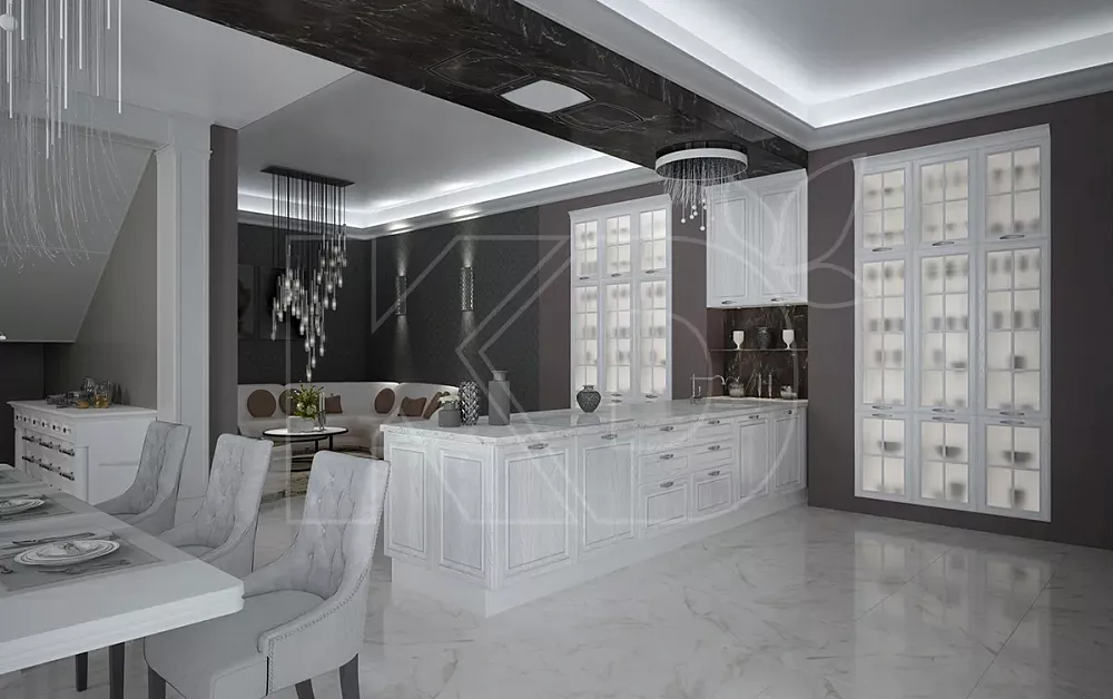 Красота дубовой фактуры полностью раскрывается в классическом стиле. Вся гамма природных коричневых оттенков передает строгость и роскошь классики. Планировка таких кухонь может быть прямой, угловой, параллельной или островной. Особенно эффектно классические модели смотрятся с гнутыми и радиусными фасадами. Подобные версии выглядят плавными и завершенными, добавляя в интерьер особый шик и элегантность.