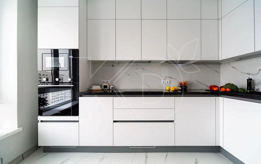 • Широкий ассортимент. Мебель для кухни такого цвета может иметь любую планировку.