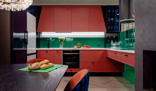 Красная кухня: идеи дизайна, фото в интерьере в Санкт-Петербурге