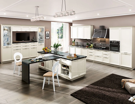В интерьере кухни с такой мебелью существенную роль, помимо самого гарнитура, играет освещение, кухонная техника и аксессуары. Они должны сочетаться между собой и создавать единое гармоничное пространство.