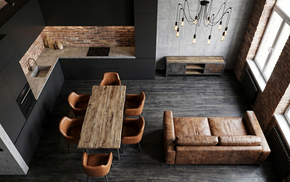 • Лофт — открытые трубы, металл, бетонные поверхности.