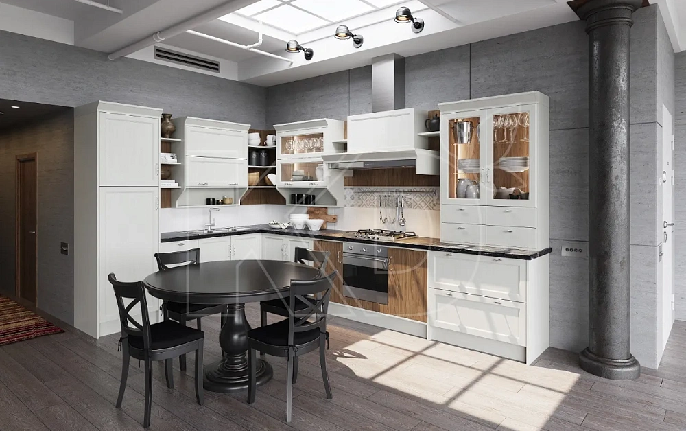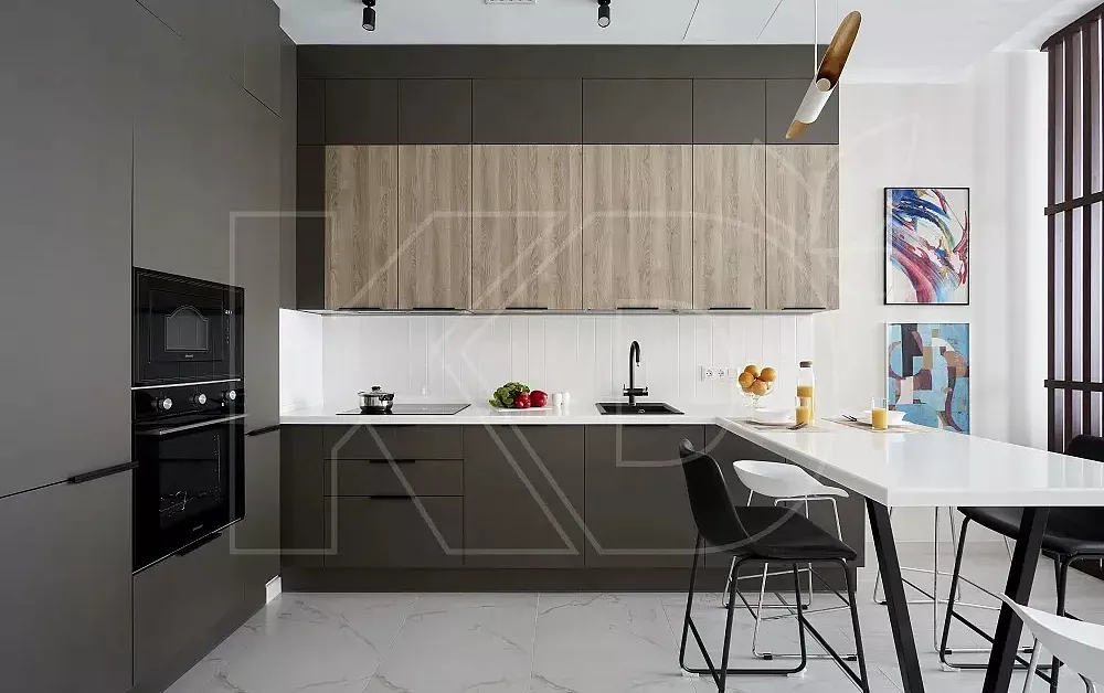 ЛДСП используют и при создании дорогих кухонь по размерам на заказ. Комбинация этого материала с натуральным шпоном позволяет снизить стоимость изделия, и этим приемом активно пользуются дизайнеры.