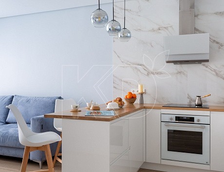 Отсутствие навесных шкафов не означает отказ от дополнительного освещения. Осветительные приборы можно разместить на стенах. Например, симметрично расположенные светильники. Для освещения рабочей зоны оптимально использовать свисающие с потолка лампы на тросах. Они смотрятся стильно и эффектно. Светодиодные ленты и точечные споты можно расположить на коробе, в котором скрыты коммуникации. Такой подсветки хватит для качественного освещения кухни П-образной без верхних шкафов.