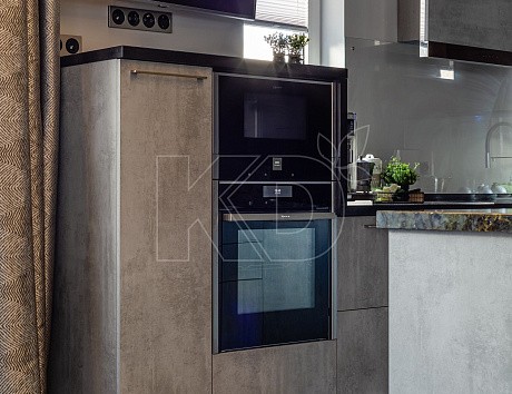 • В шкаф-колонну можно встроить микроволновую печь. Если подобная конструкция отсутствует, микроволновку располагают на специальных креплениях на стене.