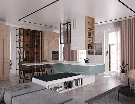 2. Зонируйте пространство с умом. По возможности вообще не разделяйте пространство. Лучше обратить внимание на расстановку мебели – поскольку на такой кухне будет происходить постоянное движение, изделия не должны мешать динамичной жизни.