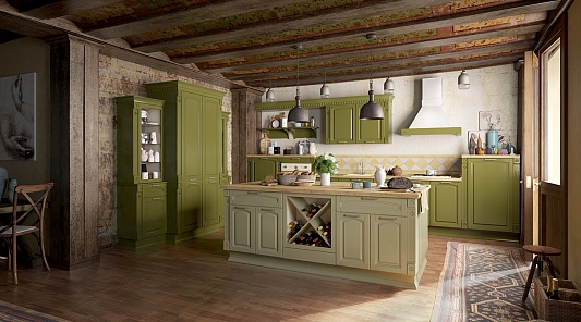 • Стилистическое разнообразие: угловую кухню оливкового цвета можно приобрести как классическую, так и современную.