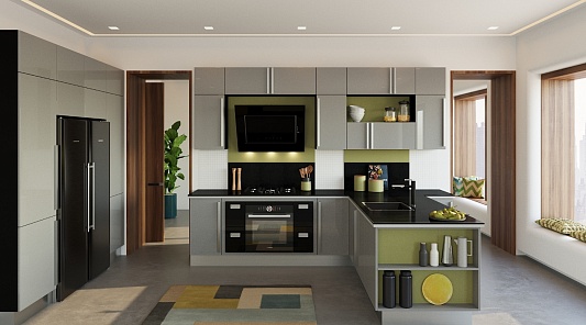 Как и угловая кухня, она подходит для помещений любого размера, различаясь по количеству модулей. Если же кухня просторная, то также можно выбрать П-образную, островную, полуостровную мебель. Часто она используется для квартир-студий или же кухонь, объединенных с гостиной или столовой, успешно осуществляя зонирование.