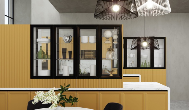 Из каких материалов выполняют кухни в желтых тонах?